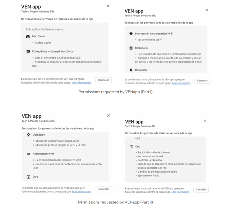 While the apps make life easier for the citizens, they also allow the Venezuelan government to track, record, and monitor individuals. The app will ask for permissions to access various functionalities when users initially install it on their phones. For example, the app will ask you to access the phone's microphones, its GPS locations, read, add, or modify its calendars and USB storage, run while it is turned on, and prevent the device from falling asleep. The government could easily track people who attended the recent anti-government protests and listen in on their conversations.